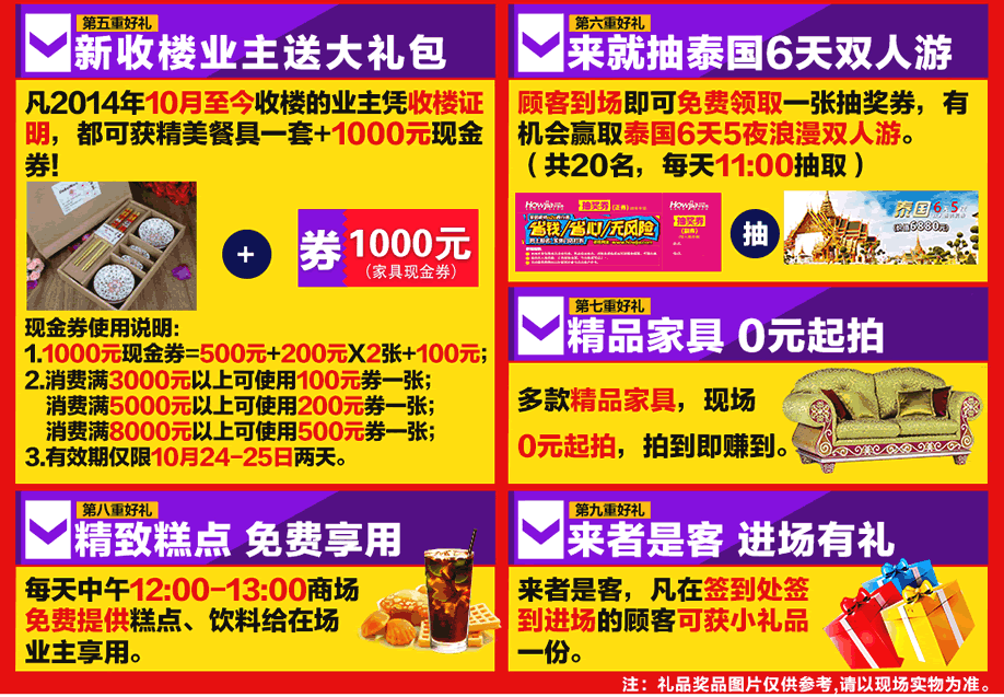 10:00-19:00:业主在门口签到处签到,领取活动资料、签到礼品;