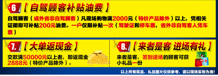 特别提示:应举办方规定,实惠家是本次活动唯一指定报名登记渠道,所有参与业主须在本页面(上方左侧或下方图标)报名,方可享受活动的所有优惠,活动前会有客服致电告之详情。查询报名成功与否可致电13025151195→