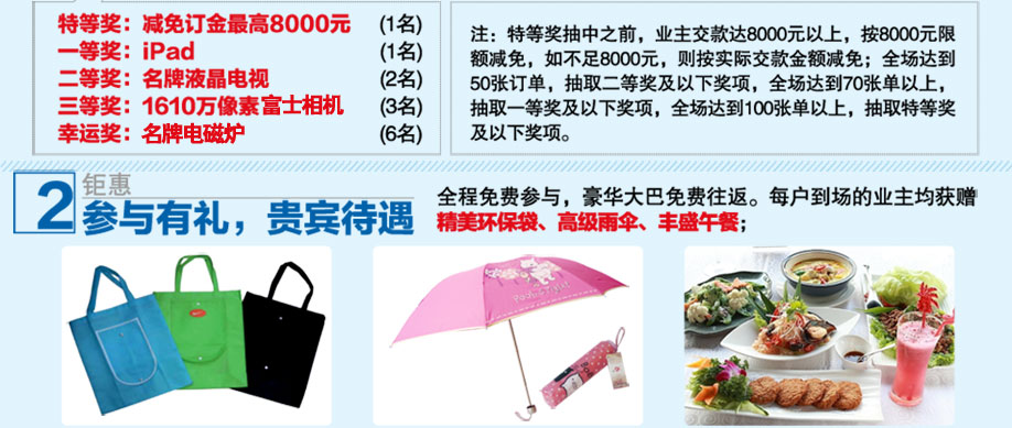 特别提示:应举办方规定,实惠家是本次活动唯一指定报名登记渠道,所有参与业主须在本页面(上方左侧或下方图标)报名,方可享受活动的所有优惠,活动前会有客服致电告之详情。查询报名成功与否可致电13025151195→