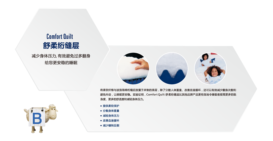 B、舒柔绗缝层-----减少身体压力,有效避免过多翻身,给您更安稳的睡眠