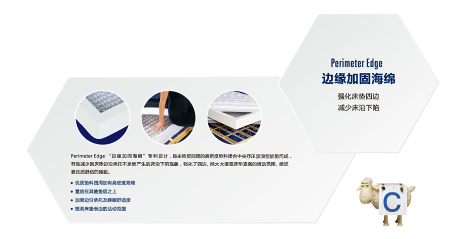 C、边缘加固系统------强化床垫四边,减少床沿下陷
