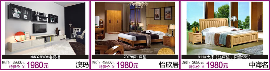 板式板木:红苹果/健威/怡欣居/橄榄树之梦/小文小艺/漫图/迪诺雅/时代领驭/致木/缘木居/欧瑞/小康人家 儿童:童话城堡/迪世乐园/色彩考拉/香东源/集美松木/森林夏娃 睡眠:慕思3D/慕思凯奇/海马家具/穗宝/棕轩/海马莱思/雅莉/雅兰/欧露丝/金海马/舒睿 沙发:芝华仕/联邦米尼/左右/格调/雄邦/本位/弗岚琦/雅迪斯/布缘/迦南美地/诗歌/圣卡堡/斯高/奥兰卡迪/弗岚琦 实木:华师傅/澳铠/一品木歌/森柏源/欧木轩/檀尊/柏家居/春晓/振昊/明朝之风/鑫匠轩/齐林居/天籁/品华居/荷塘木语/椿潮/尚古华创/天伦雅乐/兄弟家具/易森/盛世东方/钰福家美 欧式/韩式:蒙斯顿/富美轩/名仕乡村/彼特乡村/艾菲尔/澳玛/宝居乐 红木:美联/雍博堂/雍王府/和天下/金玉堂/红逸轩/大博名居/兴国红木/众发/水雨轩/苏阳红/宝麟/盛世华庭/世承/大展居/广昆红木/廣艺坊/西厢房 定制:帝亚/东方柜族/中海名/利澳/得宝莱/澳辉科洛尼/欧迈/乔登/卡弗莱 饰品:森柏堂/怡美庄园 其他:小藤匠/闽江水族/嘉美/格兰布朗/小憨豆/莎蒙拉利/嘉美地毯/金龙办公/通用电气