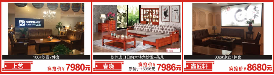 软床:穗宝、艾蒂思家、眠之韵、诗维戴尔、雅兰、托普百德、大自然、爱蒙、美得丽、菲尔、奥帝、慕思3D、奥斯丽诗、 海马莱思 沙发客厅:乐家诺、玛迪利、康宝vvsofa、联邦.米尼、斯帝罗兰、顾家、芝华仕、健威、卡乐斯、雅曼迪、依莱雅、维伦堡 现代套房:宜意枫情、木拓、美临门、翠庭轩、木邑清华、和风、华师傅、宜木构思.摩卡、奇富·雅居、木廊坊、迪诺雅、 金富来、钰福家美、澳玛、红苹果、榆木世家、森盛、缘木居、华日明珠、安卡时尚、康诺威、时代领驭、健邦 青少年系列:爱多酷、杰克丹尼、未来之窗 实木:爱凡、一品木歌、小康人家、东方森林、诺佳、益家、骏业、尚木、 哈纳斯、上艺、天伦雅乐、品木坊、春晓、金木华府、乐雅轩、耀荣轩、森林美、沐兰、鑫匠轩、裕丰 红木:雍博堂、坤山红木、创意红木、木韵丰、御品红、木真坊、金玉堂、明清居、名晟、木易堂 古典沙发:猛牛、路易世家、金钰轩 定制:新点、适而居、欧派、索菲亚、好莱客、欧莱克、米兰诺、帝亚、得宝莱、欧迈、美澳、宜居、百能、美雅、华艺、 圆方、科麦、欧莱特、奥维尔、合生雅居