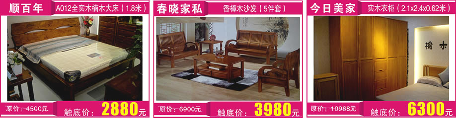 实木家具:康帝星/尚木/裕丰/春晓/小康人家/ 佳林金柚木/缘木居/天缘皇宫/品木坊 /松木堡/伟业/顺百年/卓木源