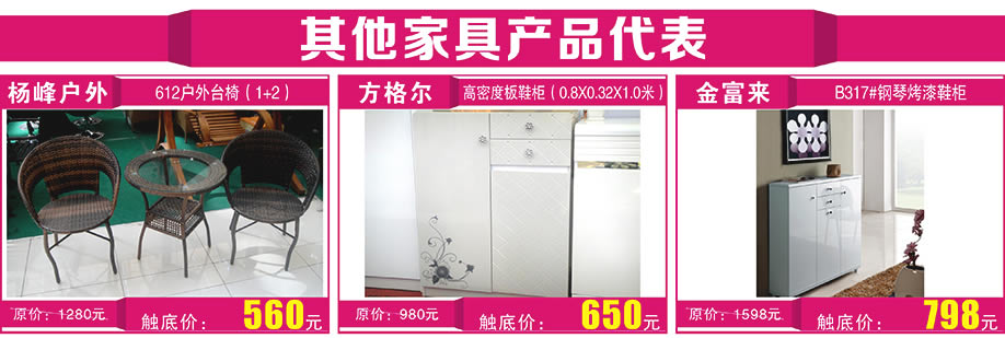 活动介绍: 1月24-25日家具年底清仓抢购会,一降到底,清仓特卖,年度最惠:高中低档家具年末低价心跳大放价,百余工厂年终冲量,全场家具不计成本给力让利羊城。实木、板式、红木、沙发、睡眠、儿童、整体衣柜等全屋家具一站式购齐!活动2天,爆款家具全程厂价呈现,惠上惠,礼尚礼,千足黄金、平板电脑满额送,电磁炉、金条富贵好运抽,快过年了,添置新家具,1月24-25日来万盛名家参加年底抢购会,买好家具,过好年。实惠家诚邀广大业主报名参与!!