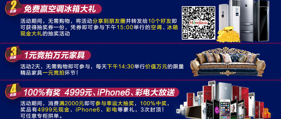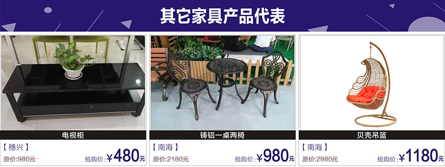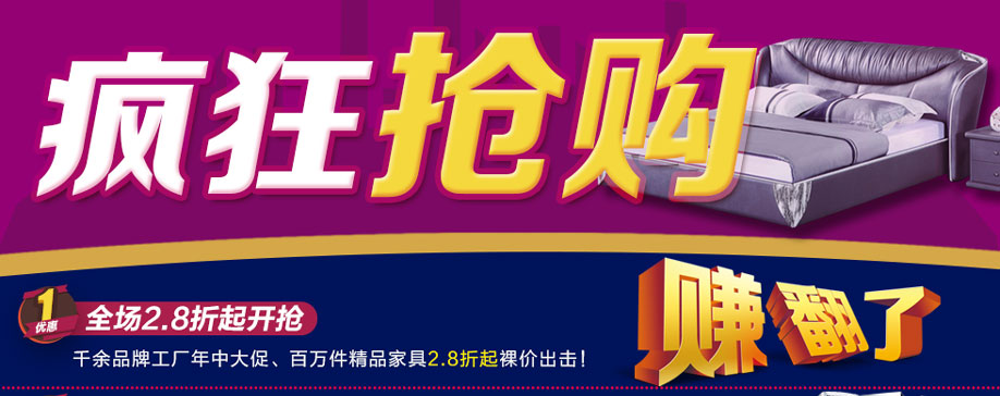 活动介绍: 7月30-31日,福永红树湾国际家具将举办以“暑期强档 年中大促”为主题的大型促销活动。本次活动,千余品牌工厂、百万件精品家具年中大促,价格低至2.8折起开抢,集结高、中、低三个档次,涵盖板式板木、沙发、睡眠、儿童、实木、红木、欧式、办公等家具类别。活动期间,1元竞拍价值万元精品;购物还可享多重优惠,参与4999元现金,iPhone6、幸运100%大抽奖、实付满额还可参与砸金蛋赢全屋家电、黄金等巨奖大礼!家具裸价特供惠,礼惊全城!