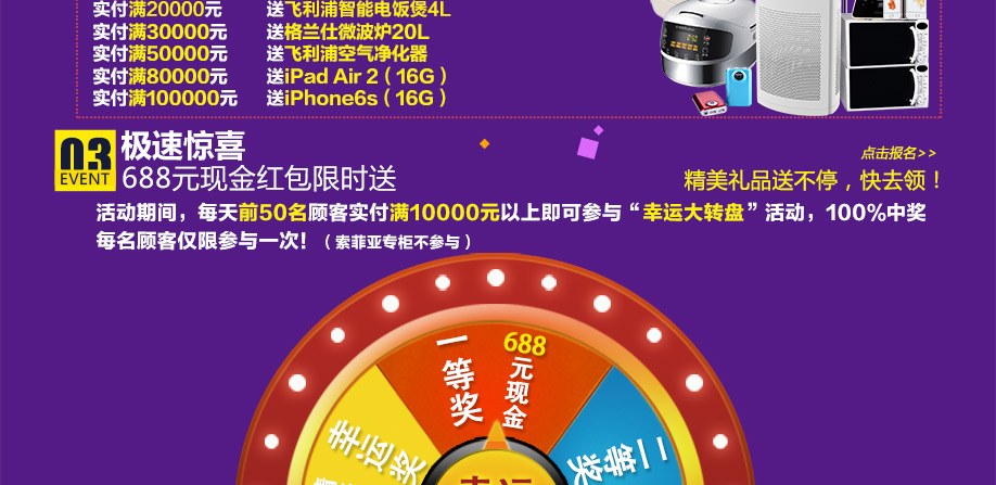 特别提示:应举办方规定,实惠家是本次活动唯一指定报名登记渠道,所有参与业主须在本页面(顶部)报名,方可享受活动的所有优惠,活动前会有客服致电告之详情。查询报名成功与否可致电87565320→