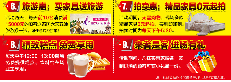 特别提示:应举办方规定,实惠家是本次活动唯一指定报名登记渠道,所有参与业主须在本页面(顶部)报名,方可享受活动的所有优惠,活动前会有客服致电告之详情。查询报名成功与否可致电13025151195→