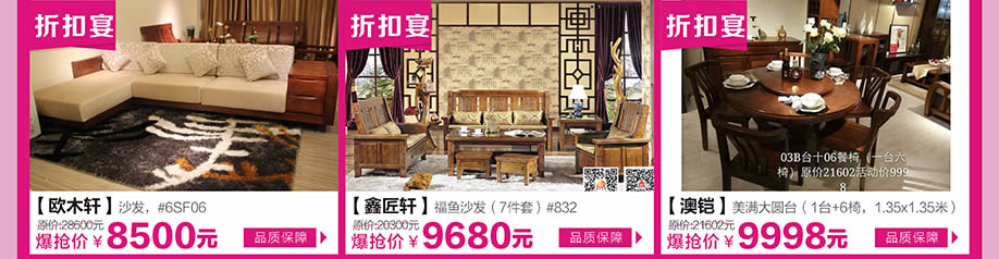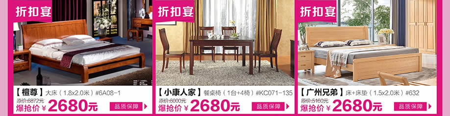 板式板木:红苹果/健威/怡欣居/橄榄树之梦/小文小艺/漫图/宜意枫情/时代领驭/致木/缘木居/欧瑞/小康人家 儿童:童话城堡/迪世乐园/香东源/集美松木/森林夏娃 睡眠:慕思3D/慕思凯奇/海马家具/穗宝/棕轩/海马莱思/雅莉/雅兰/欧露丝/金海马/舒睿 沙发:芝华仕/联邦米尼/左右/格调/雄邦/本位/弗岚琦/雅迪斯/布缘/迦南美地/诗歌/圣卡堡/斯高/奥兰卡迪 实木:华师傅/澳铠/一品木歌/森柏源/欧木轩/檀尊/柏家居/春晓/振昊/明朝之风/鑫匠轩/齐林居/天籁/木道/荷塘木语/椿潮/尚古华创/天伦雅乐/兄弟家具/易森/盛世东方/钰福家美 欧式/韩式:蒙斯顿/富美轩/名仕乡村/彼特乡村/艾菲尔/澳玛/宝居乐 红木:美联/雍博堂/雍王府/和天下/金玉堂/红逸轩/大博名居/兴国红木/众发/水雨轩/苏阳红/宝麟/盛世华庭/世承/大展居/广昆红木/廣艺坊/西厢房/德宝红木 定制:帝亚/东方柜族/中海名/利澳/得宝莱/澳辉科洛尼/欧迈/乔登/卡弗莱/色彩考拉 饰品:森柏堂/怡美庄园 其他:小藤匠/闽江水族/嘉美/格兰布朗/小憨豆/莎蒙拉利/嘉美地毯/金龙办公/通用电气