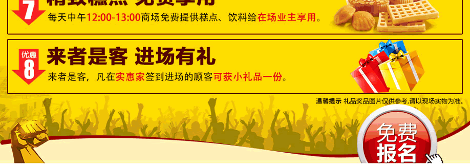 特别提示:应举办方规定,实惠家是本次活动唯一指定报名登记渠道,所有参与业主须在本页面(顶部)报名,报名登记成功方可享受活动的所有优惠环节,活动前会有客服致电告之详情。如对报名成功与否有疑问,可致电020-87565320查询→