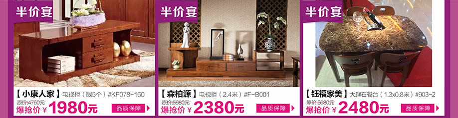 板式板木:红苹果/健威/怡欣居/橄榄树之梦/小文小艺/漫图/宜意枫情/时代领驭/致木/缘木居/欧瑞/小康人家 儿童:童话城堡/迪世乐园/香东源/集美松木/森林夏娃 睡眠:慕思3D/慕思凯奇/海马家具/穗宝/棕轩/海马莱思/雅莉/雅兰/欧露丝/金海马/舒睿 沙发:芝华仕/联邦米尼/左右/格调/雄邦/本位/弗岚琦/雅迪斯/布缘/迦南美地/诗歌/圣卡堡/斯高/奥兰卡迪 实木:华师傅/澳铠/一品木歌/森柏源/欧木轩/檀尊/柏家居/春晓/振昊/明朝之风/鑫匠轩/齐林居/天籁/木道/荷塘木语/椿潮/尚古华创/天伦雅乐/兄弟家具/易森/盛世东方/钰福家美 欧式/韩式:蒙斯顿/富美轩/名仕乡村/彼特乡村/艾菲尔/澳玛/宝居乐 红木:美联/雍博堂/雍王府/和天下/金玉堂/红逸轩/大博名居/兴国红木/众发/水雨轩/苏阳红/宝麟/盛世华庭/世承/大展居/广昆红木/廣艺坊/西厢房/德宝红木 定制:帝亚/东方柜族/中海名/利澳/得宝莱/澳辉科洛尼/欧迈/乔登/卡弗莱/色彩考拉 饰品:森柏堂/怡美庄园 其他:小藤匠/闽江水族/嘉美/格兰布朗/小憨豆/莎蒙拉利/嘉美地毯/金龙办公/通用电气