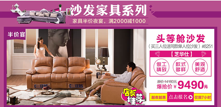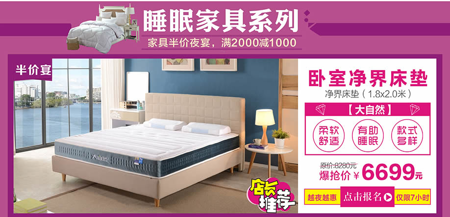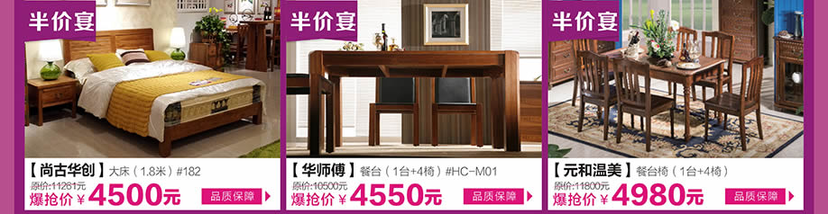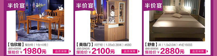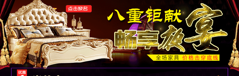 活动介绍: 红树湾家具中山大道东店携手实惠家将于10月29日举办以“家具半价夜宴”为主题的惠民活动。活动期间,汇聚一线家具品牌,家具类别涵盖了板式板木、客厅沙发、软体睡眠、实木、红木、欧式等;全场家具价格击穿底线,底价惠民让您省钱到底!购物满额即可纵情畅享八重钜惠,礼品有50寸液晶电视、滚筒洗衣机,床垫等千件豪礼!别犹豫了,一起将夜宴狂欢到底吧!请于实惠家报名参与本次活动,提前锁定本次活动所有优惠,畅享业主福利吧!
