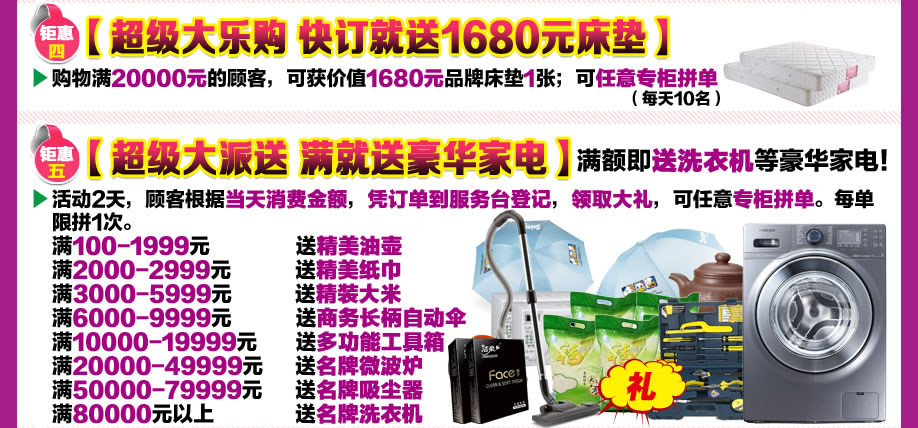 09:30-20:00:全程自由选购,凭订单在统一收银台交款,领取抽奖券和买满就送礼品;