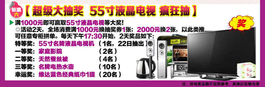 17:30- :现场大抽奖,抽奖后顾客继续选购;未中奖业主可继续参与第二天抽奖