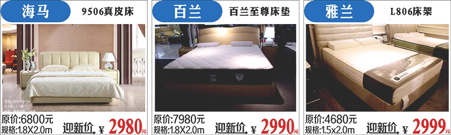 软床家具:百兰/爱蒙/穗宝/菲尔/海马/美斯/雅莉/雅兰/美国舒达/尺度