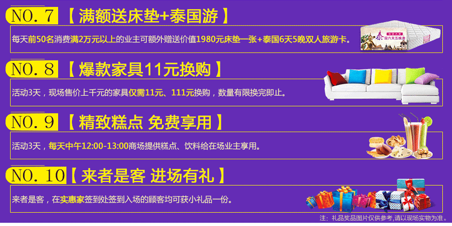 特别提示:应举办方规定,实惠家是本次活动唯一指定报名登记渠道,所有参与业主须在本页面(顶部)报名,方可享受活动的所有优惠,活动前会有客服致电告之详情。查询报名成功与否可致电13728114491→