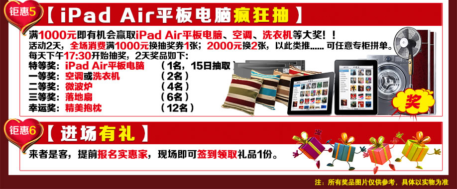 09:30-20:00:全程自由选购,凭订单在统一收银台交款,领取抽奖券和买满就送礼品;
