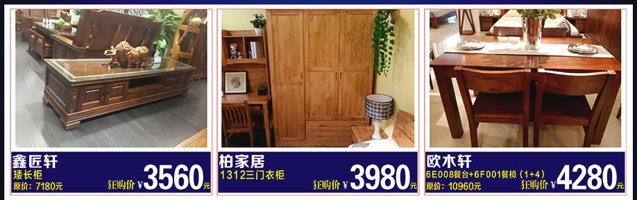 实木家具:欧木轩、凯旋家具、鑫匠轩、柏家居、匠艺百年、天籁、木行天下、尚木华旺轩、赛华居