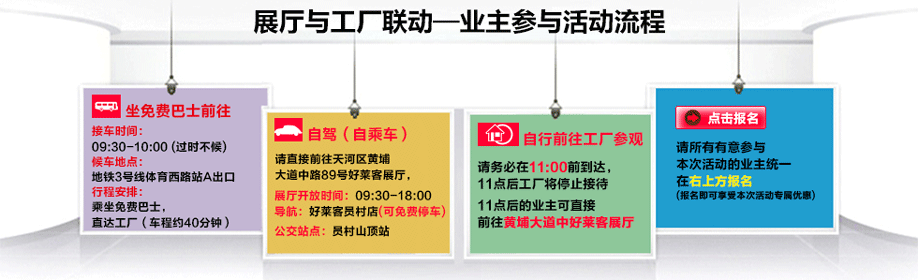 特别提示:应举办方规定,实惠家是本次活动指定报名登记渠道,所有参与业主须在本页面(上方左侧或下方图标)报名,报名登记成功方可享受活动的所有优惠环节,活动前会有客服致电告之详情。如对报名成功与否有疑问,可致电020-32038939查询→。