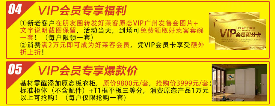 活动介绍: 好莱客从产品研发、原料选择,制造技术,直到每个顾客的家庭,在每一个环节上坚持追求原态环保的理念,满足广大业主需求。11月27日,好家网与好莱客强强联手举办“原态VIP广州发售会 工厂店专享惠”的大型定制促销活动!5000方旗舰店,裸价直供,仅此1天!活动期间,预存送500元现金券,玩的就是心跳;预存送价值698元拉杆箱,超值划算;狂砸免单奖3898元、冰箱、洗衣柜等好礼,100%中奖!VIP会员专享买门送柜体,您还在等什么?全屋家居定制,真的不贵!
