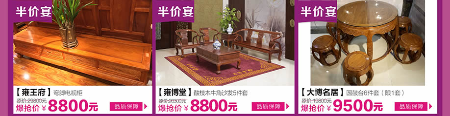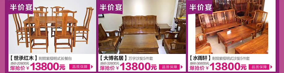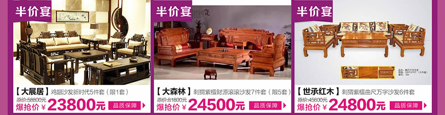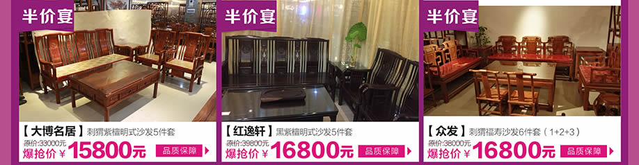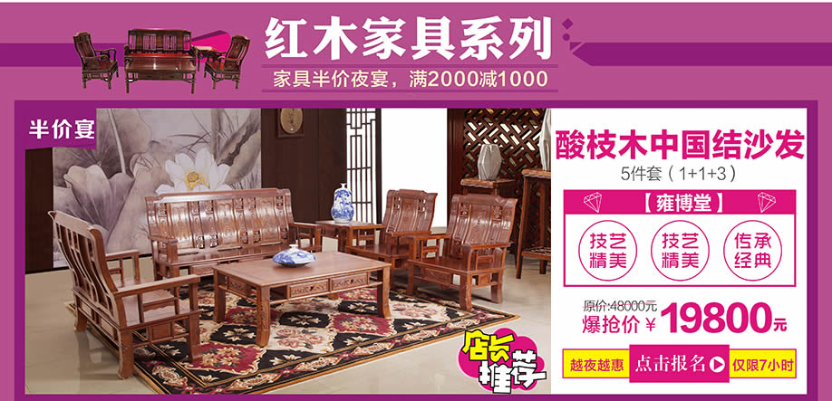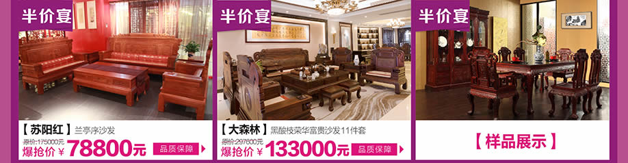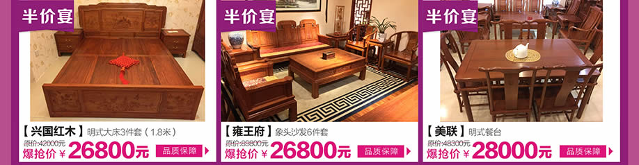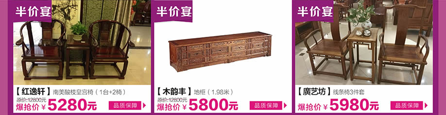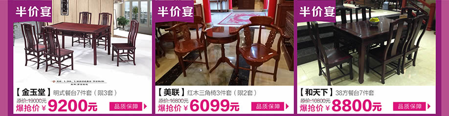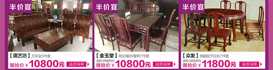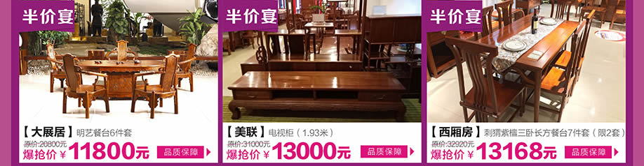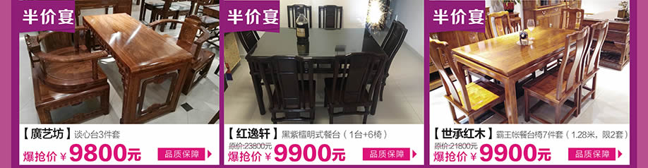 活动介绍: 古往今来,红木家具不仅在做工方面,蕴含了精湛的技术工艺,还饱含了深厚的文化底蕴,具有很高的收藏价值,为大多数人喜爱。11月26-27日,红树湾家具中山大道东店将举办“工厂开仓日之红木家具展销会”的惠民活动。10000方红木馆,红木家具品牌荟萃,活动期间爆款直降,10000元免单大派送!1800台液晶电视、洗衣机等全屋家电满额即送!1000个现金大奖优先抢!iPhone7等大奖狂抽!纵情畅享工厂开仓日之名品红木家具鉴赏直销会,狂欢仅此2天!火速报名参与到活动当中来吧!