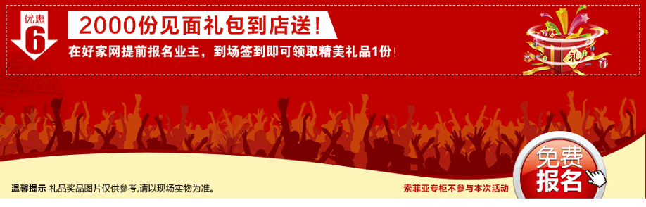 特别提示:应举办方规定,实惠家是本次活动唯一指定报名登记渠道,所有参与业主须在本页面(顶部)报名,方可享受活动的所有优惠,活动前会有客服致电告之详情。查询报名成功与否可致电87565320→