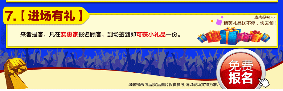 特别提示:应举办方规定,实惠家是本次活动唯一指定报名登记渠道,所有参与业主须在本页面(顶部)报名,报名登记成功方可享受活动的所有优惠环节,活动前会有客服致电告之详情。如对报名成功与否有疑问,可致电020-87565320查询→
