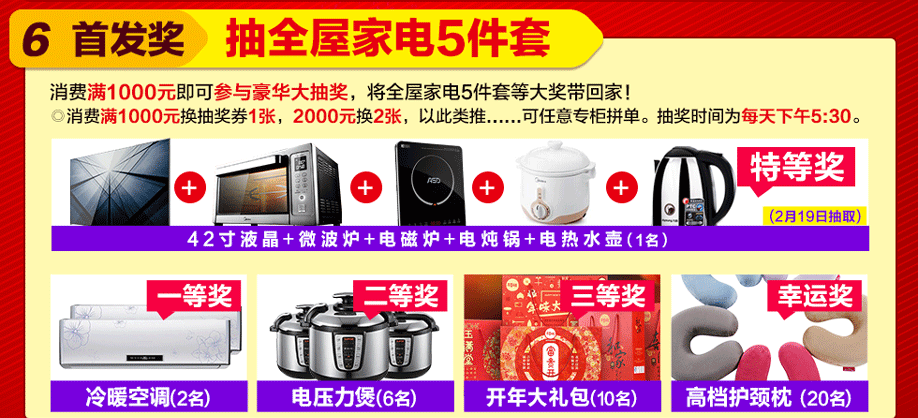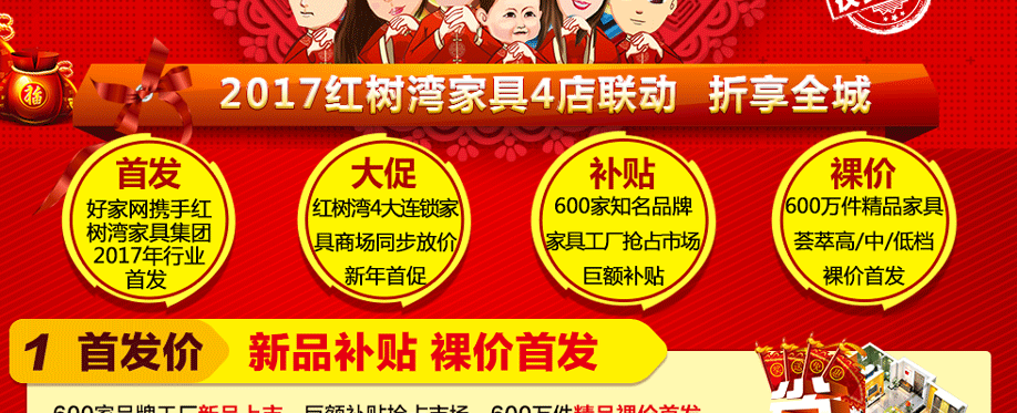 活动介绍: 【特别关注】2月18-19日,广州城区红树湾家具“2017家具首发惠”震撼来袭!4店联动,抄底2天,打响新年第一炮!600品牌工厂狂让利!600万件家具狂放价!6000件豪礼狂宴羊城!钜惠狂飙,拼尽全利,足够让你疯狂!大派福利:来就免费抽8000元免单券!狂送现金:购物返现金4999元!超级大礼:满额就送新版苹果手机;重磅大戏:再抽全屋家电5件套!多重豪礼聚惠全城!只等你来!火速报名参与到活动当中来吧!