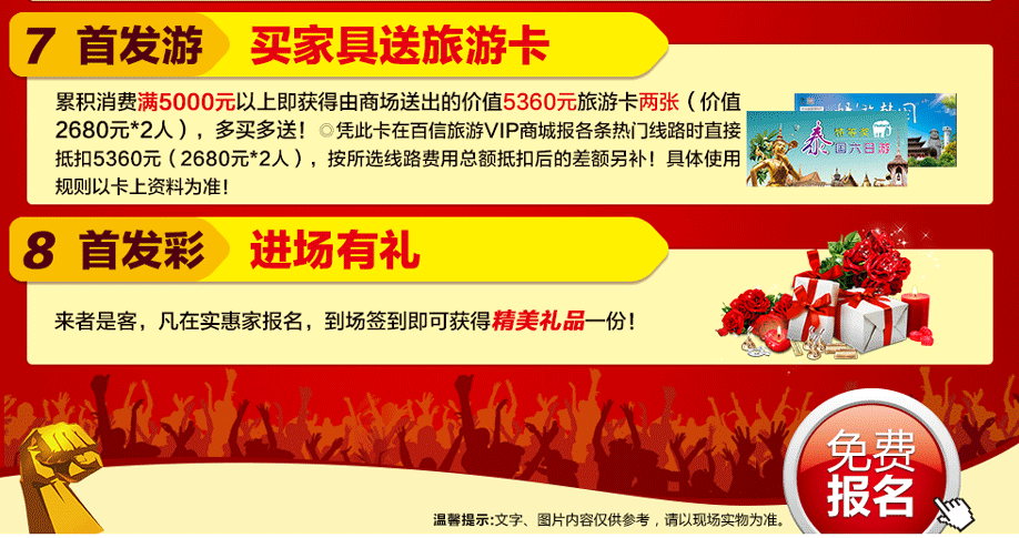 特别提示:应举办方规定,实惠家是本次活动指定报名登记渠道,所有参与业主须在本页面(上方左侧或下方图标)报名,报名登记成功方可享受活动的所有优惠环节,活动前会有客服致电告之详情。如对报名成功与否有疑问,可致电020-32038939查询→。