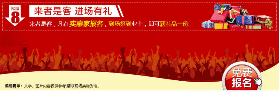 特别提示:应举办方规定,实惠家是本次活动唯一指定报名登记渠道,所有参与业主须在本页面(顶部)报名,方可享受活动的所有优惠,活动前会有客服致电告之详情。查询报名成功与否可致电13728114491→