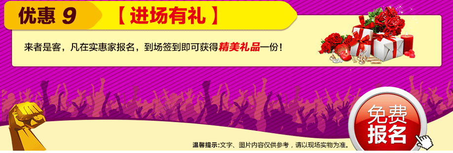 特别提示:应举办方规定,实惠家是本次活动唯一指定报名登记渠道,所有参与业主须在本页面(顶部)报名,报名登记成功方可享受活动的所有优惠环节,活动前会有客服致电告之详情。如对报名成功与否有疑问,可致电020-87565320查询→