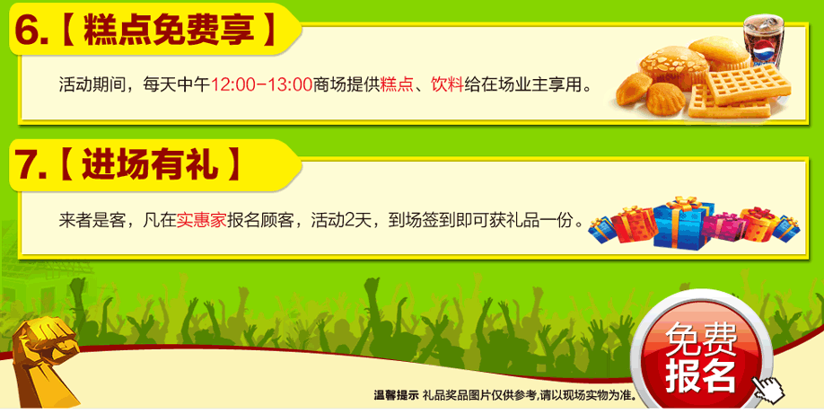 特别提示:应举办方规定,实惠家是本次活动唯一指定报名登记渠道,所有参与业主须在本页面(顶部)报名,报名登记成功方可享受活动的所有优惠环节,活动前会有客服致电告之详情。如对报名成功与否有疑问,可致电020-87565320查询→