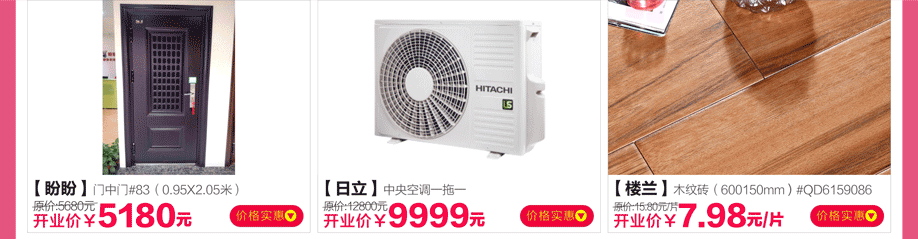 建材:TOTO、光益、华艺卫浴、卡思摩、科勒、美标、摩恩、日立变频中央空调、达利龙头、东鹏瓷砖、马可波罗、通利、三雄极光、老铜匠、雅阁、盼盼、万磊、芬琳漆、欧普照明