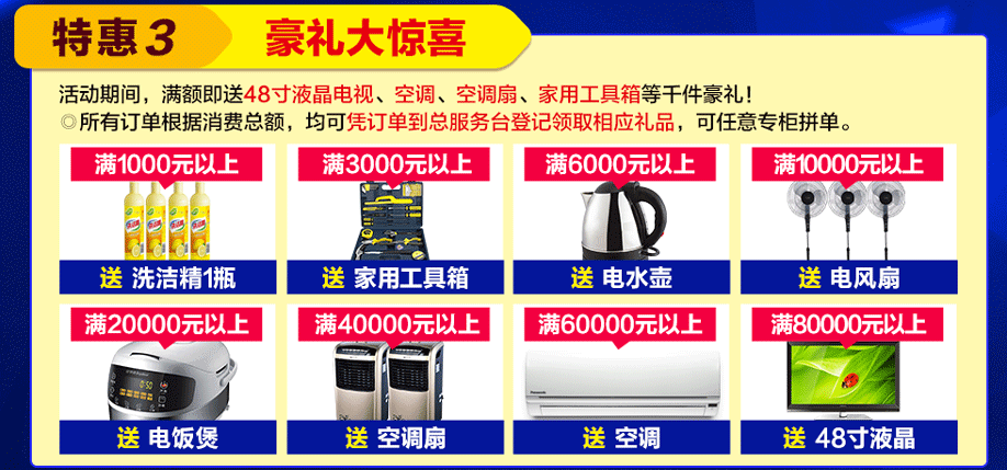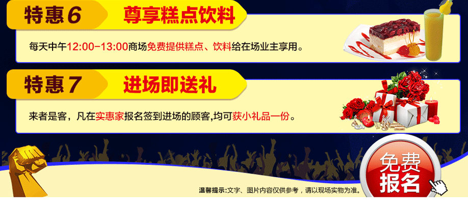 特别提示:应举办方规定,实惠家是本次活动唯一指定报名登记渠道,所有参与业主须在本页面(顶部)报名,方可享受活动的所有优惠,活动前会有客服致电告之详情。查询报名成功与否可致电13728114491→