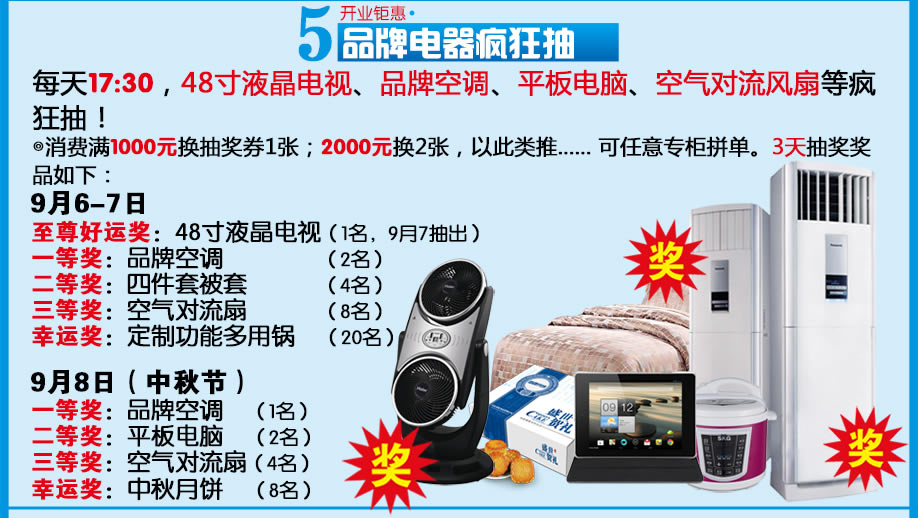 活动时间:9月6-8日(仅限中秋假期3天)09:00-20:00