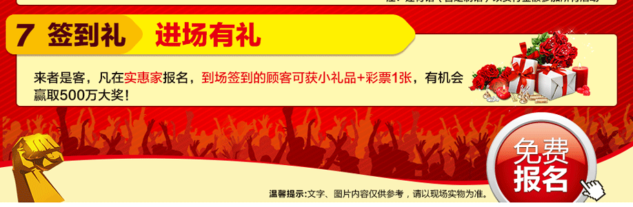特别提示:应举办方规定,实惠家是本次活动指定报名登记渠道,所有参与业主须在本页面(上方左侧或下方图标)报名,报名登记成功方可享受活动的所有优惠环节,活动前会有客服致电告之详情。如对报名成功与否有疑问,可致电020-32038939查询→。