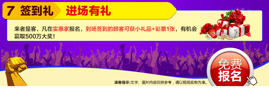 特别提示:应举办方规定,实惠家是本次活动指定报名登记渠道,所有参与业主须在本页面(上方左侧或下方图标)报名,报名登记成功方可享受活动的所有优惠环节,活动前会有客服致电告之详情。如对报名成功与否有疑问,可致电020-32038939查询→。