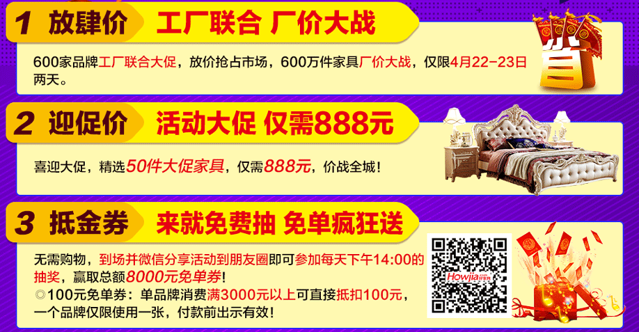 活动地址:广州市荔湾区康王北路柏德来商城负二层--红树湾家具(地铁陈家祠站C出口)