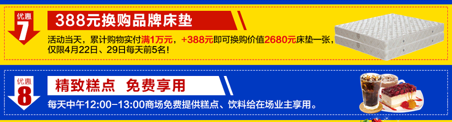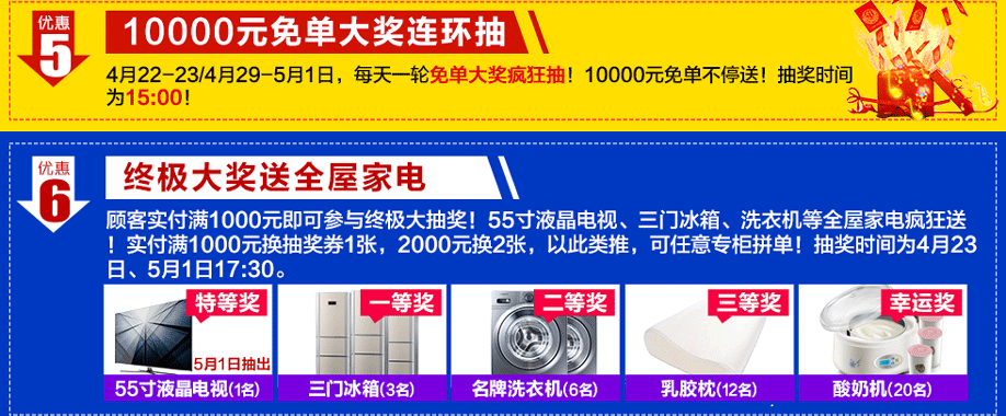 活动时间:4月22-23/4月29-5月1日(限此5天)10:00-20:00