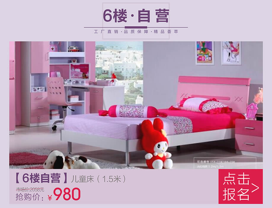 四楼:儿童家具馆、彩色套房系列、床垫、软床系列、睡眠中心