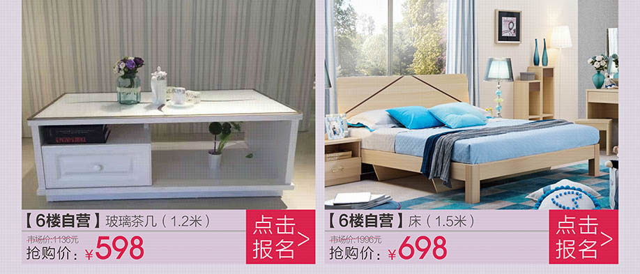 六楼:实惠家具馆:尚木套房、威达、天行、低碳贝贝、木香居、布朗尼、浦裔乔、新红阳、兰舟等众多品牌。