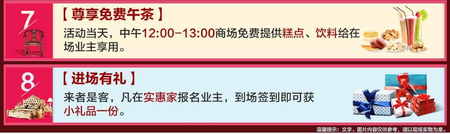 特别提示:应举办方规定,实惠家是本次活动唯一指定报名登记渠道,所有参与业主须在本页面(上方左侧或下方图标)报名,方可享受活动的所有优惠,活动前会有客服致电告之详情。查询报名成功与否可致电 13728114491→