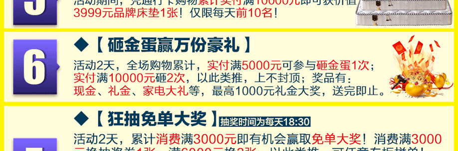 活动介绍: 优惠源于让利,大促就在此刻!7月29-30日红树湾番禺两店联合实惠家举办【家具建材工厂开仓日】大型促销活动!家具低价钜献,特惠狂野来袭!红树湾番禺大道店蓄势待发,PK一切促销神话!活动期间:凭通行卡实付满额即可获价值3999元品牌床垫1张,名额有限!还可参与砸金蛋,赢千元现金大奖!更有现金券、4999元免单大奖等你赢回家!给您重重钜惠、惊喜不断!狂欢2天,等您来!快上实惠家报名参加活动吧!