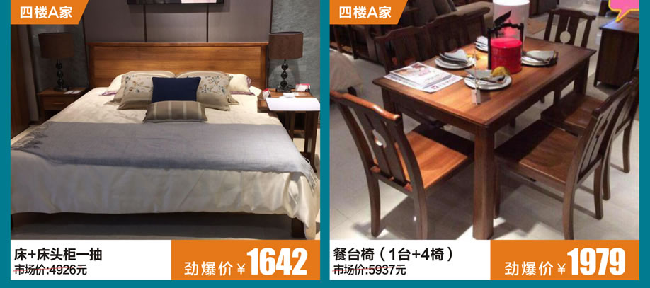 四楼:国亨家居/黑色史密斯/帝美/奇新/金兴/富誉/木槿花香/财盛/纯典/吉祥百得/和翔/匠森/领欣/大恒/楷模/兄弟榉木/宏生电动餐桌/A家家具