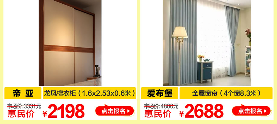 活动介绍: 大牌家具低至4.8折,最高享100%现金返还!9月9-10日/16-17日香江家居旗舰店"家具惠民日"大型优惠促销活动,邀您来相惠!20万红包大派送+3888元现金狂抽+快订赢家具提货卡等!多重惊喜等你来享!活动期间,逾百家居大牌底价狂销,全场名品家具巅峰让利!实付满1万元,即可参与抽取799元家具提货卡!实付款满3000元即可参加豪华现金抽奖,最高可中3888元现金大奖!如此优惠活动不容错过!快上好家网报名吧!