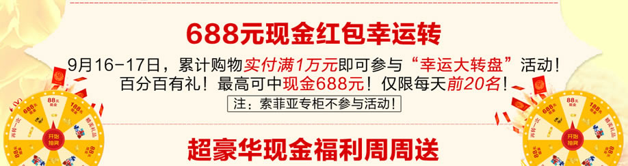 10:00-20:00 688元现金红包幸运转,等你来赢!(仅限9月16日-17日)