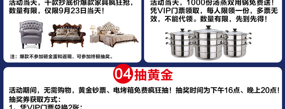 16:00-16:30 领蒸锅,送旅游,抽黄金钞票、电烤箱大奖