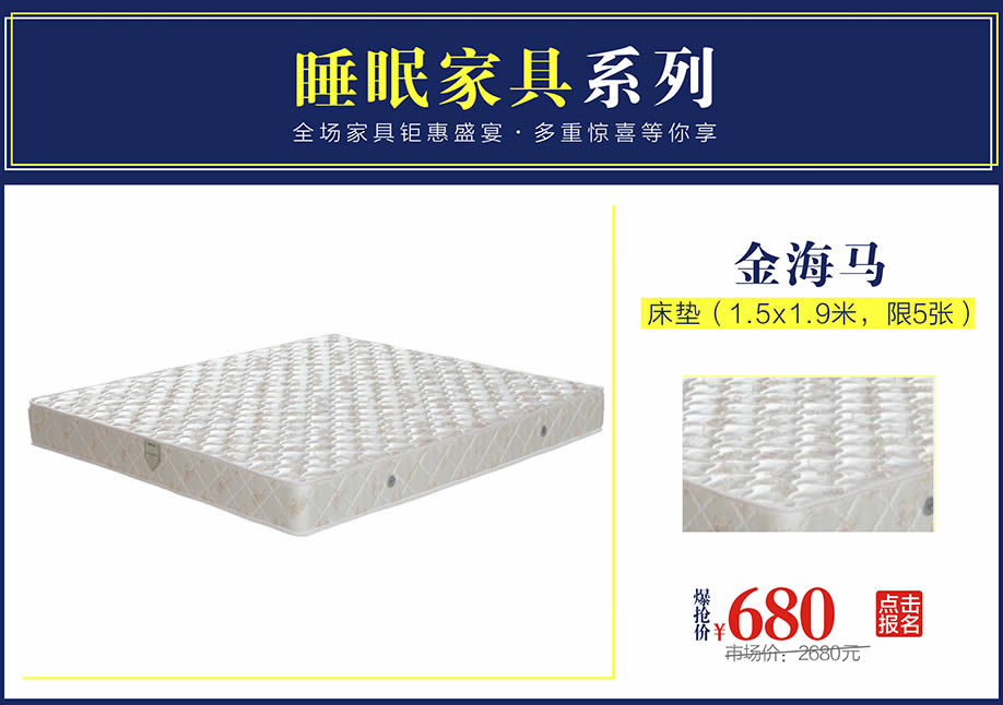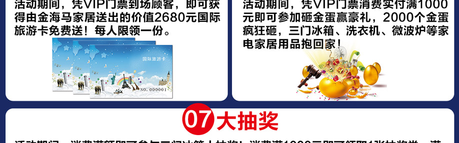 活动介绍: 羊城劲爆好消息,9月23日金海马家居花都店举办【夜总惠Ⅱ】的大型促销活动,疯狂8小时,越夜越优惠,越夜越精彩!一年仅此一次!巅峰巨作!全城沸腾!再享多重钜惠,震撼全城!抓住机遇,乐享不停!99元家具疯狂抢!砸金蛋赢豪礼,100%中奖!还有200万现金红包大奖连环抽!更有欢乐大抽奖:三门冰箱、洗衣机、微波炉等全屋家电疯狂送!马上报名参加活动,提前锁定优惠!