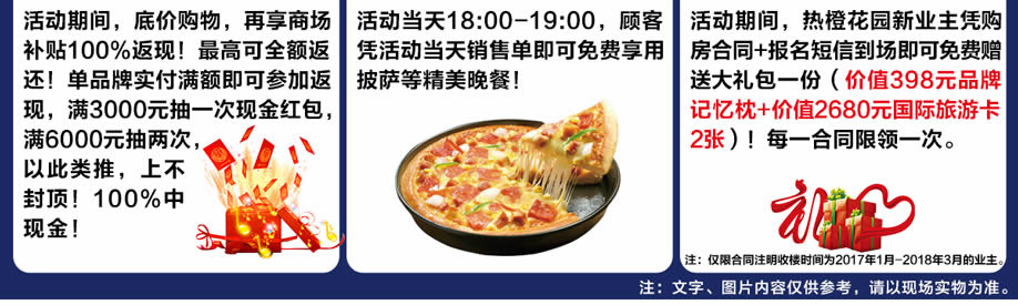 特别提示:应举办方规定,实惠家是本次活动唯一指定报名登记渠道,所有参与业主须在本页面(顶部)报名,报名登记成功方可享受活动的所有优惠环节,活动前会有客服致电告之详情。如对报名成功与否有疑问,可致电020-32038939查询→