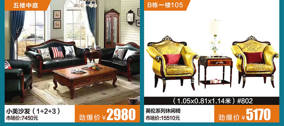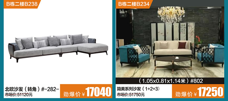 二楼:国亨家居/皇爵/圣莎拉/乔顿家私/华莎驰/宜奥/楷模/芝华仕/乐雅轩/皇庭贵族/皇庭世家/卡宾/艾伦图尔/猛牛/百诗图/神龙/匠明尚品/美雅轩/风尚生活/高点家具